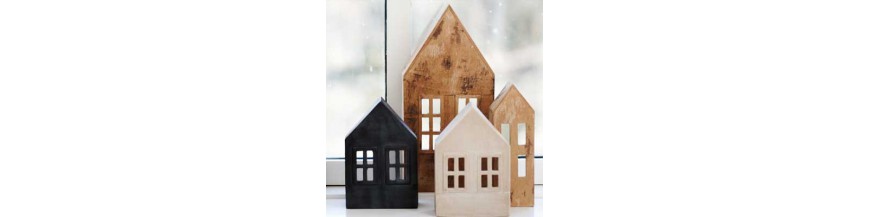 Smukke metal huse til fyrfadslys i sortlakkeret. Fine i en vindueskarm sammen med kaneltræhuse eller som en fin dekoration på et bord. Hus med 10 vinduer er H13,5 D5,5 B11 cm