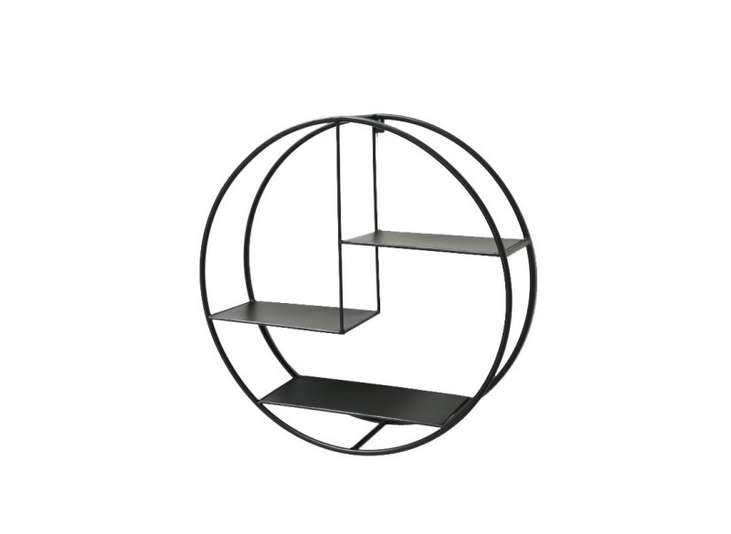 Skab et flot grafisk samlingspunkt på din væg, med denne store runde sorte metalhylde Hyldene er sprøjte lakkeret og skaber forskellige niveauer og rum du kan og vise dine flotte ting frem. Ø55cm og dybde 15cm