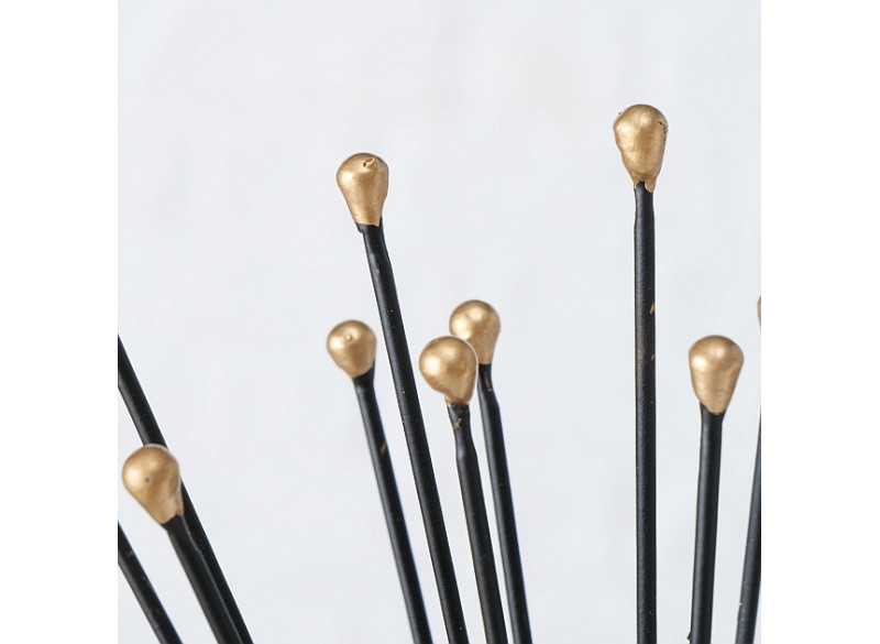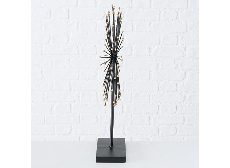 Dette dekorative borddeco er lavet af metal. Motivet ligner en sol i sort og guld. Forskøn dit hjem med denne smukke bord deco, enten som borddekoration eller til vindueskarmen.