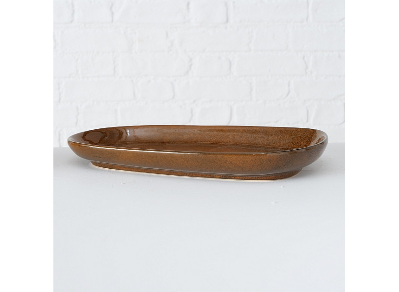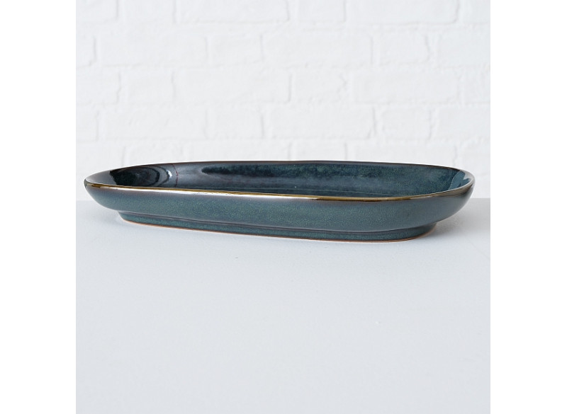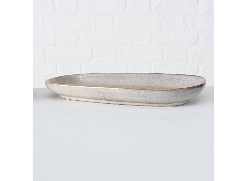 Oval porcelænstallerken, diameter 15x29 cm, højde 3 cm, tåler opvaskemaskine