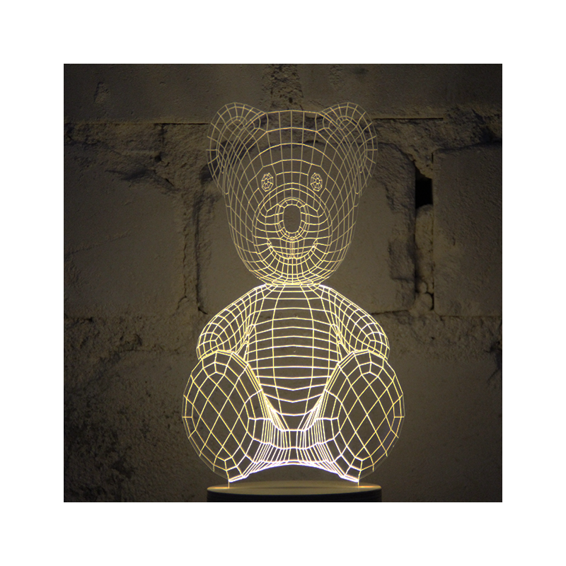 De smukke todimensionelle LED-lamper fra BULBING leger med vores opfattelsesevne og skaber en overbevisende 3D-illusion. Det laserskårne mønster i det lysledende plexiglas giver ikke kun lampen et legende 3D-motiv, men kaster også et spændende lys på sine omgivelser. Her som en lille bamseModtager :