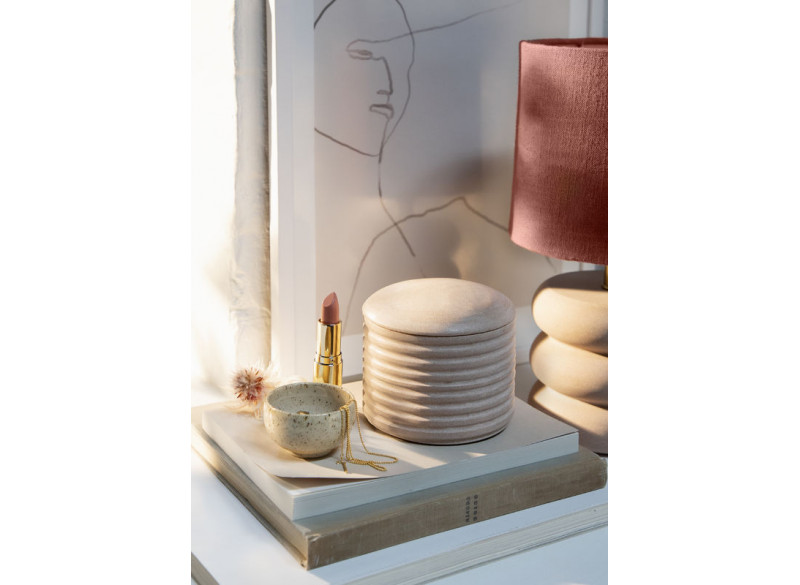 Enkel og smuk krukke med låg i sandsten fra Cozy Living, fås i 2 farver og 2 størrelserModtager :