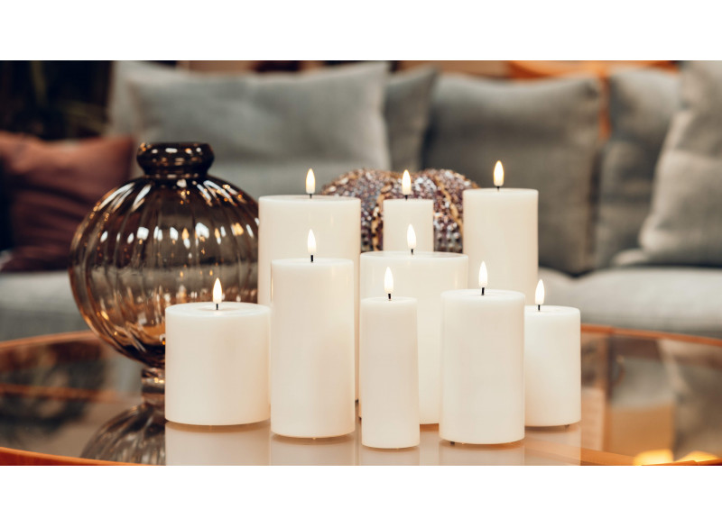 Deluxe Home Art lys er de mest realistiske lys som findes på markedet lige nu. Ikke nok med at de har en helt realistisk flamme som blafrer naturlig når man tænder lyset, de har også genskabt den smeltet grube med "flydenede" voks som stearinlys danner. Lysene kan også styres med fjernbetjening med tænd/sluk samt timer. Perfekt til hygge på sofabordet, spisebordet eller på reolen uden at du skal være bange for at glemme dem.