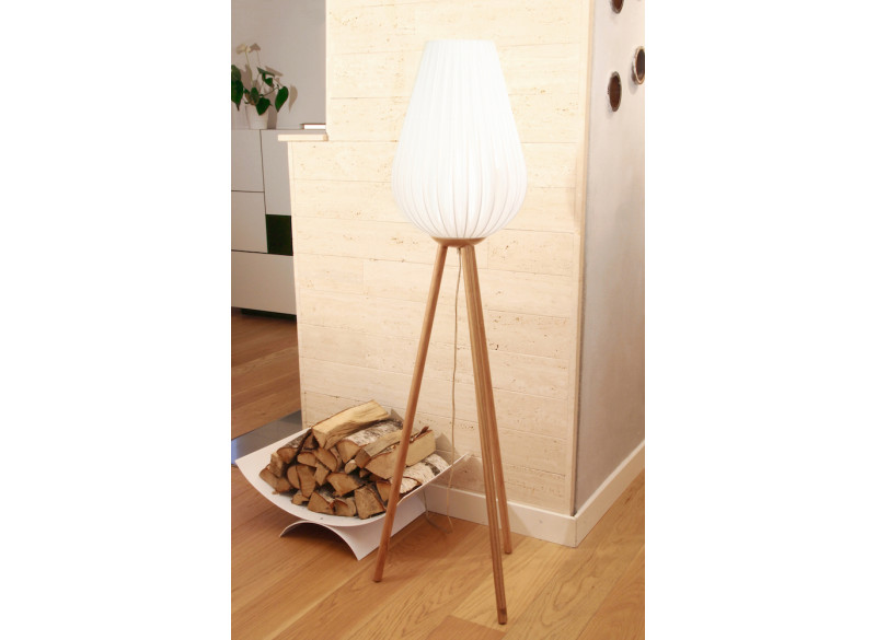 Pynt din stue op med den smukke ”Swea” gulvlampe, som er lavet af olieret bearbejdet ask og en skærm af sammenrullede hvide plastbånd. Hertil følger en transparent ledning med afbryder og en gulvafbryder.