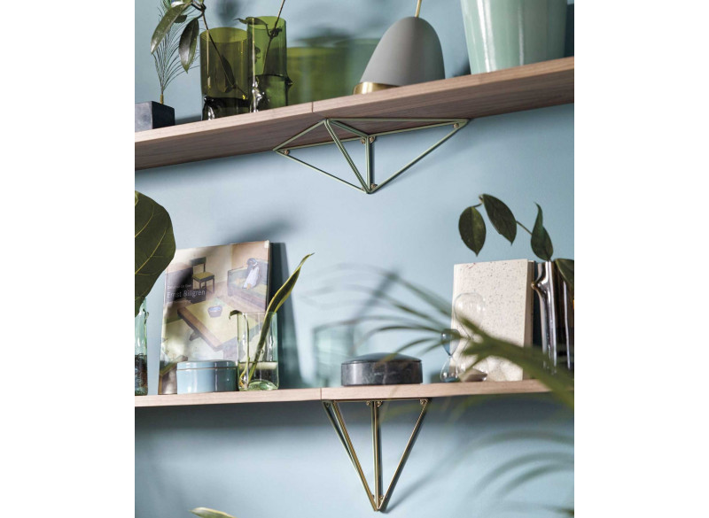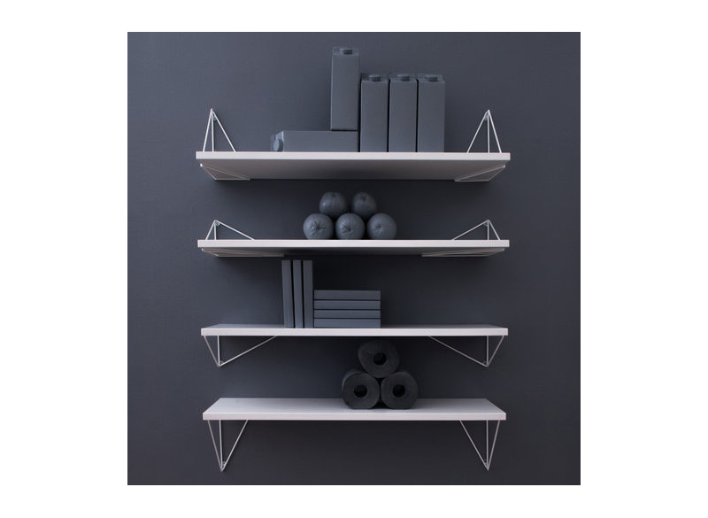 Pythagoras er et meget flexibelt hyldesystem. Her fås hyldene i hvid, sort samt eg- og valnød-finer. Brug hylden sammen med Pythagoras hyldeknægte og byg en flot og flexibel vægreol som kan udvides og bygges på ved behov.