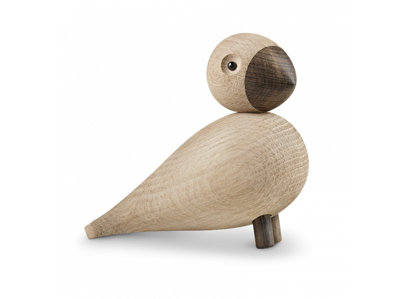 Kay Bojesen fuglen Alfred er sidst ankomne familiemedlem i rækken af trædyr fra aber til flodheste og sangfugle. Alfred er skabt i natureg og røget egetræ og passer ind i tidens bolig- og indretningstendenser, hvor det er naturmaterialerne, der får lov at dominere. En perfekt gaveidé, som holder hele livet fra barnedåb til redebyggeren til det allerede etablerede hjem med hang til dansk design.