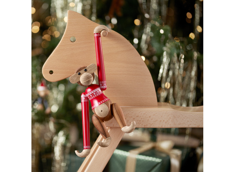 Denne charmerende Kaj Bojesen-abe er klædt i en festlig julesweater, der bringer ekstra julestemning til dit hjem. Den ikoniske træabe er pyntet med et farverigt julemotiv, hvilket gør den til en ideel dekoration eller en hjertevarm gave i juletiden.Modtager :