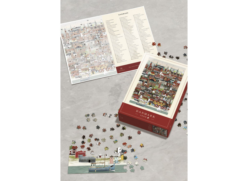 I dette puslespil er Danmark blevet delt i 1000 stykker. Nu skal det bare samles af dig. Mens du samler puslespillet vil du lære Danmark endnu bedre at kende, da du vil finde bygninger fra alle kroge i landet. Puslespillet er en ideel fællesaktivitet, som kan samle alle generationer i familien i timevis af meningsfuldt samvær. Her kan alle finde noget, de genkender, og mon ikke det også bringer gode minder frem fra nogle af de steder, du har besøgt.