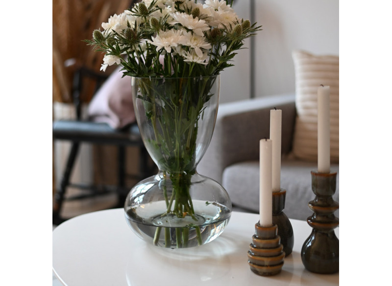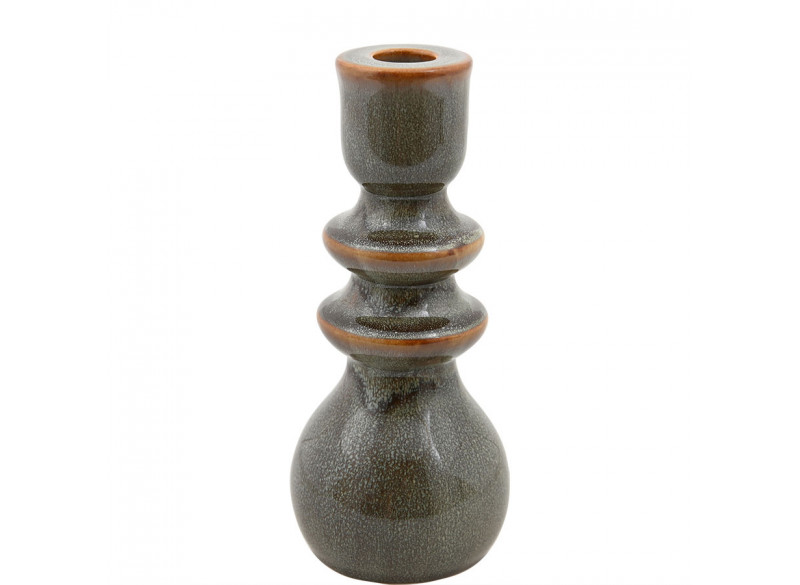 Lysestage fra Miljøgården i en grønbrun farve - lavet i keramik og fås i 2 størrelser.Modtager :