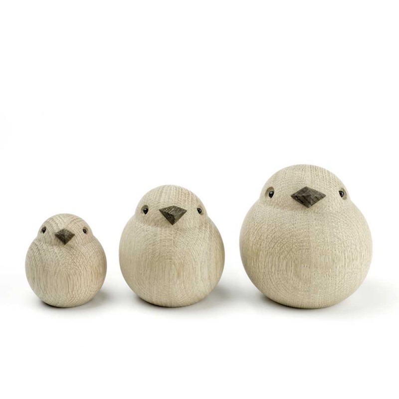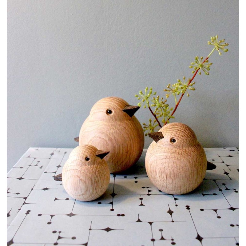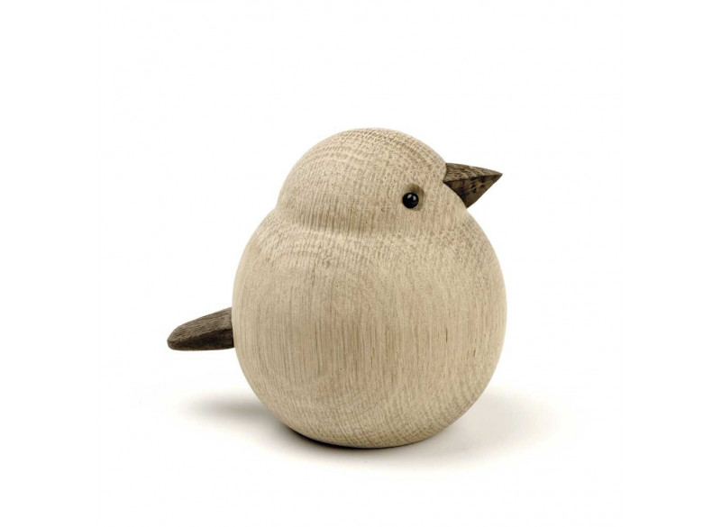 Smuk rund spurve mor fra danske Novoform - figuren er lavet af naturlig og røget eg. Udtrykket er rundt, blødt og uimodståelig. Fås også i 2 større figurer, henholdsvis baby og far spurv.
