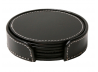 Smuk og praktisk læder dækkeserviet med lys syning i kanten.