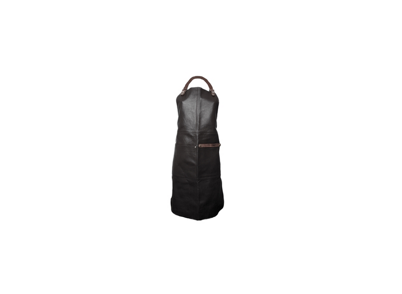 Kvalitet læder forklæde håndlavet med mange små detaljer. Nakkeremmen er både justerbar og solid og i samme farve som den rem, der kan bruges til at hænge køkkenhåndklæder.