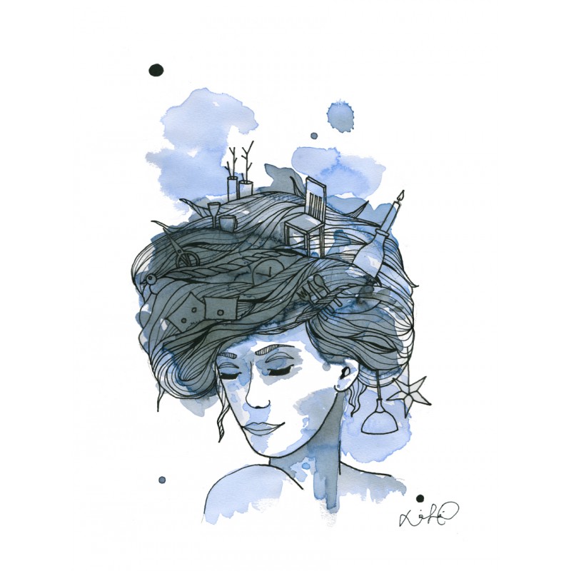 Blue Woman - Unikt signeret og nummereret billede af Louise Haugaard - trykket i kun 75 eksemplarer