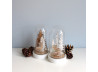 Fint lille ornament med motiv i hvidmalet træ med en glasklokke over.