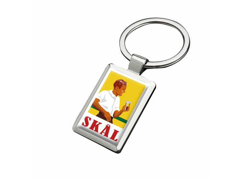 En festlig nøglering i rustfrit stål med epoxyprint af en retro plakat, hvor en smilende mand løfter sit ølglas i en skål. Perfekt som gave til ølentusiaster og dem, der elsker dansk hygge og tradition. En robust og stilfuld souvenir med det ikoniske ord "SKÅL!"Modtager :