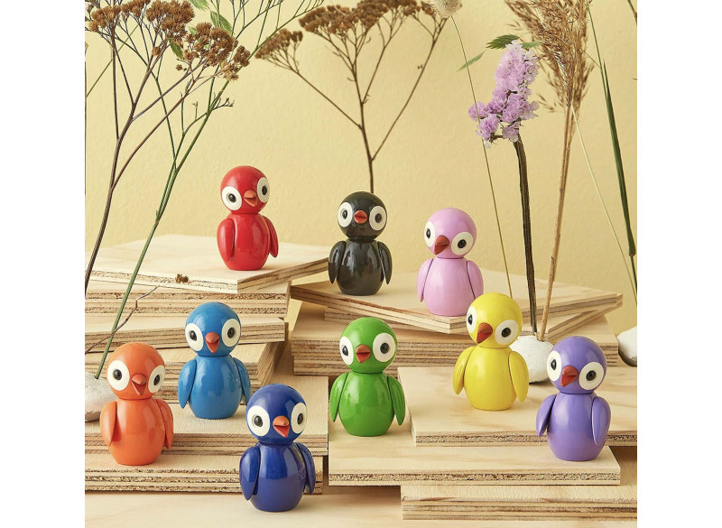 Hver især er de små fugle klædt i deres favoritkulør, og du har hele 9 smukke farver at vælge imellem. Du kan endda skabe din helt egen, unikke fugl ved at sætte hoveder, vinger og kroppe sammen på kryds og tværs. Hvilken unik art skaber du?