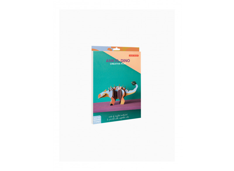 Dino Ankyl – Byg, Leg, Brøl! Genskab fortiden med denne 3D Dino Ankyl. Lavet af genanvendt pap og trykt med vegetabilske farver – både sjov og miljøvenlig. Pop 19 dele ud fra 2 B6-ark og saml en robust dinosaur på 20,3 x 4,4 x 12 cm.Find vejledningen på indersiden af emballagen og træd ind i en verden, hvor dinosaurer hersker – stærke, imponerende og fulde af leg!