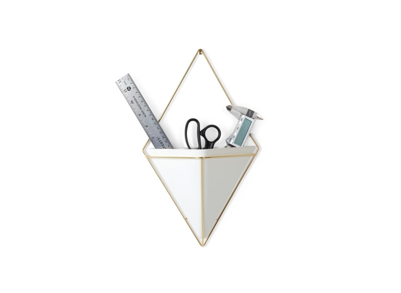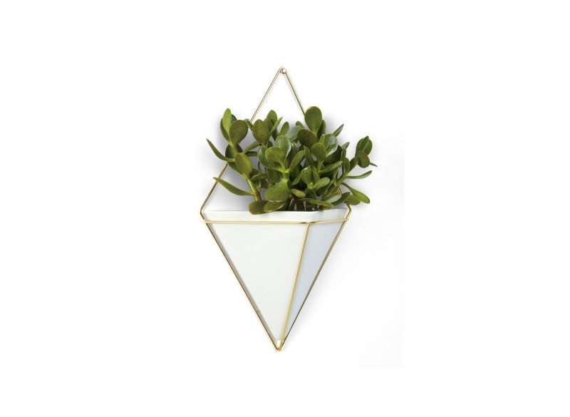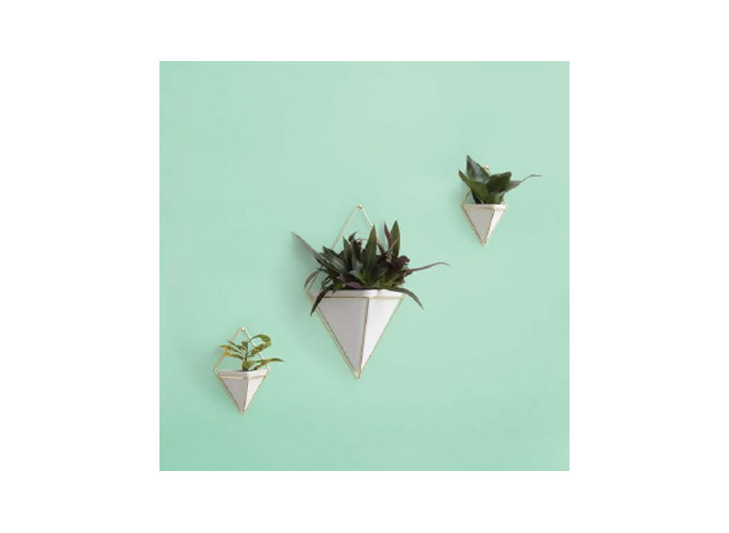 Vægmonteret potteskjuler i keramik med gylden metal wire. Den kan arrangeres i et væld af kompositioner. Kan bruges overalt i dit hjem til planter eller til opbevaring af redskaber og nips.