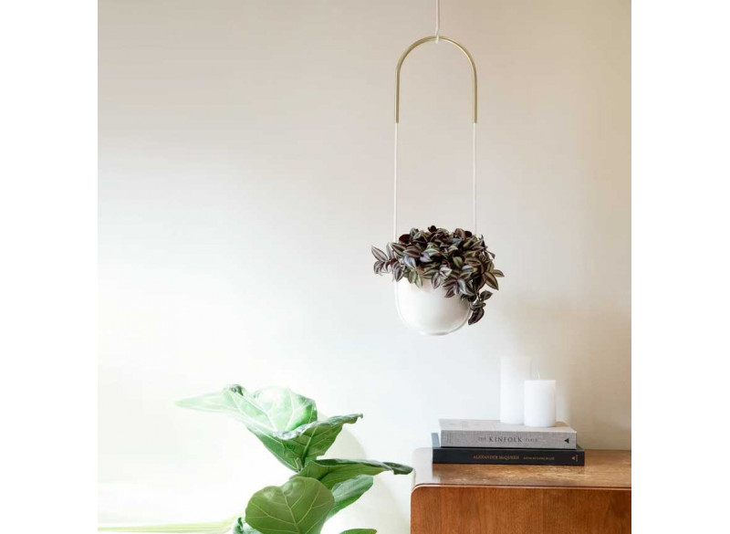 Tilføj lidt grønt til dit rum med denne blomster skjuler fra Umbra. Blomster skjuleren er lavet af keramik og ophænget af sort reb og messing. Du kan vælge at hænge enten på væggen eller direkte fra loftet.