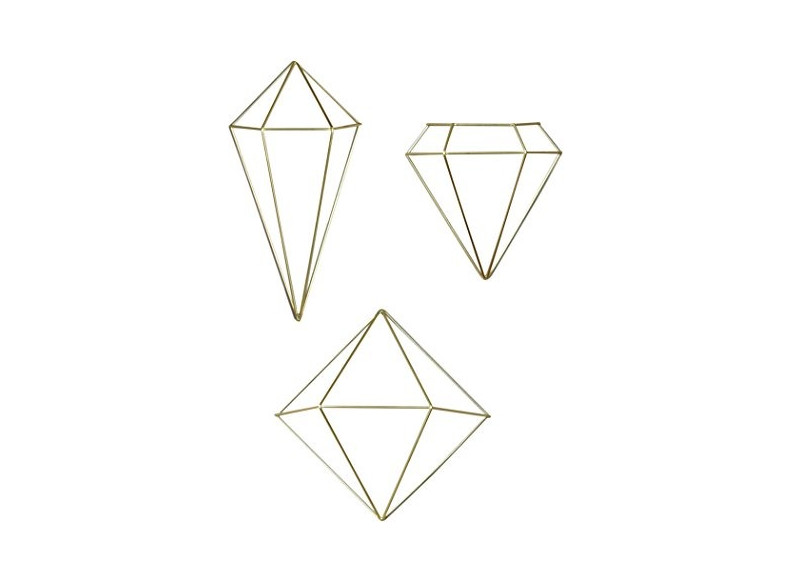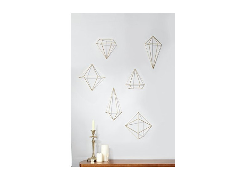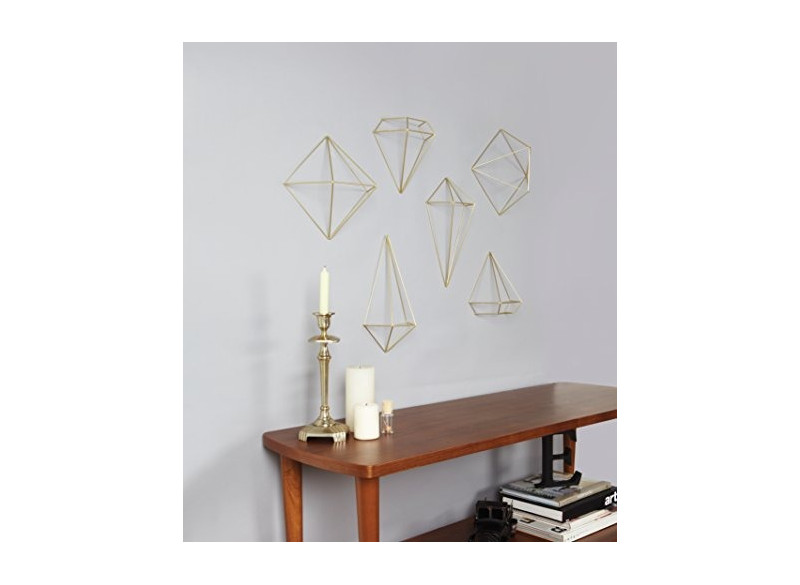 Disse messingbelagte metal geometriske former kan hænges fra loftet, vægmonteret eller vises på enhver bordplade. Opdater din plads øjeblikkeligt ved hjælp af plastikklip for at deltage i to stykker sammen for at færdiggøre et sæt af tre eller vægmontering det komplette sæt på seks.