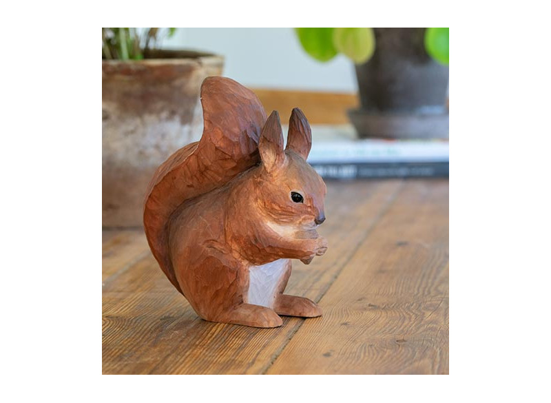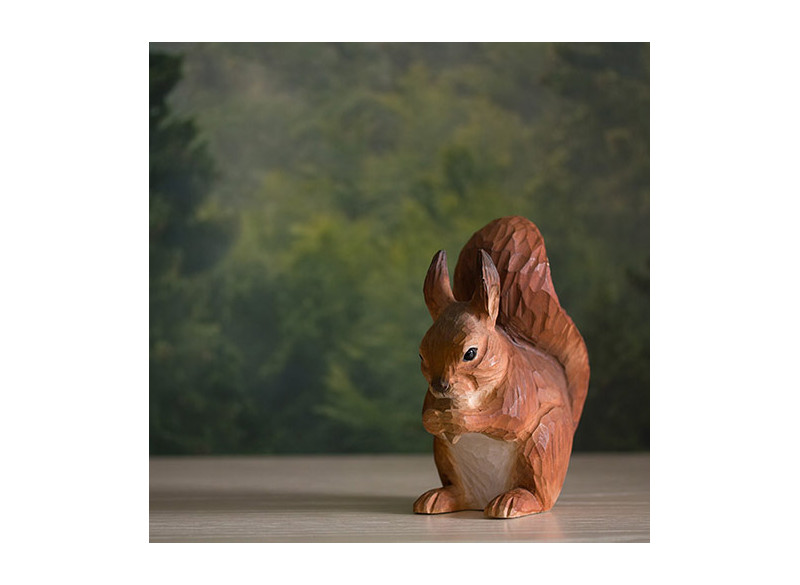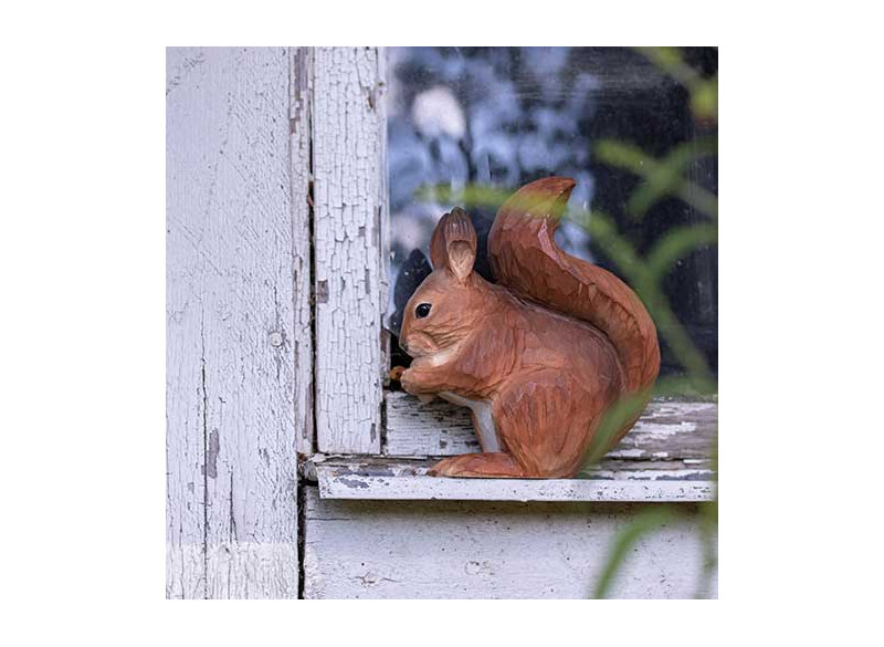 DecoAnimal er en serie af livagtige dyr, der dygtigt skåret i hånden fra lindetræ. Egernet er malet med miljøvenlige malinger.