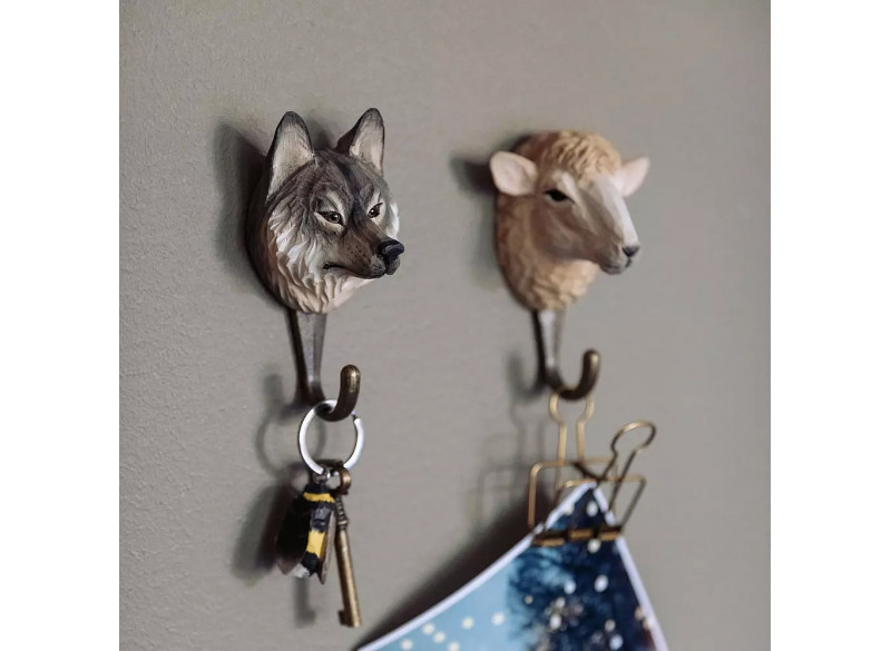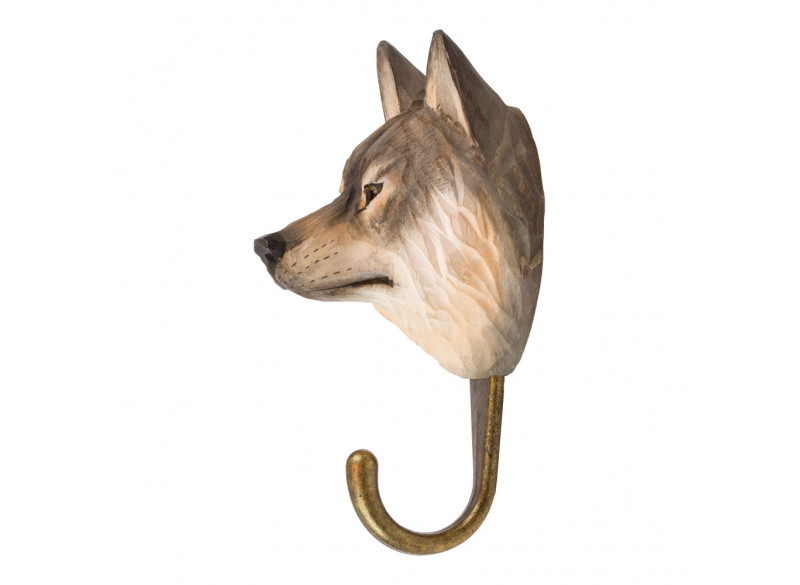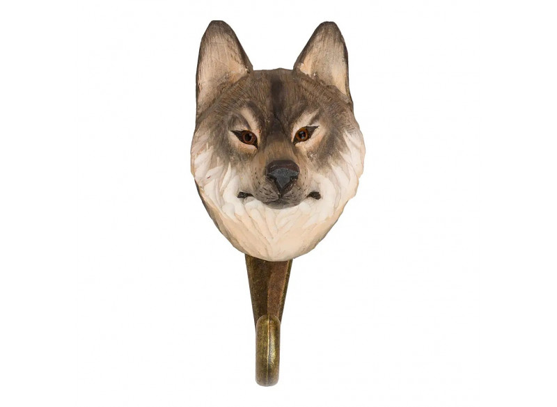Dyreknage Ulv - dette voldsomme rovdyr, i form af en rustik knage, er ikke noget at frygte. Den grå ulv, der er udskåret og malet for hånd, vil helt sikkert give et ekko af vildmarken i hallen, børnehaven eller hvorfor ikke i jagthytten? Placeret på væggen bliver det en praktisk knage til tøj og andre genstande.