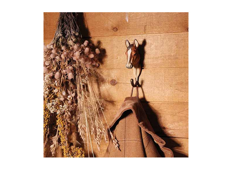 Endelig har heste elskere sin egen krog til at hænge tøjet på.Den yndefulde arabiske hest er her som en stilfuld og funktionel tøjhænger, håndlavet og håndmalet.