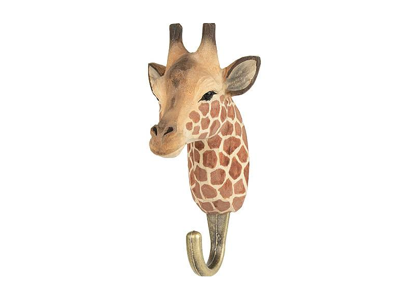 Materiale: Dyrhoveder af udskåret træ, malet med ikke-giftig akrylmaling. Krogene er af bronzefarvet metal