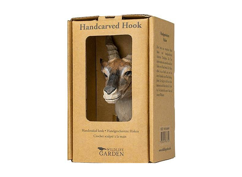 Materiale: Dyrehoved af udskåret træ, malet med ikke-giftig akrylmaling. Krogene er af bronzefarvet metal