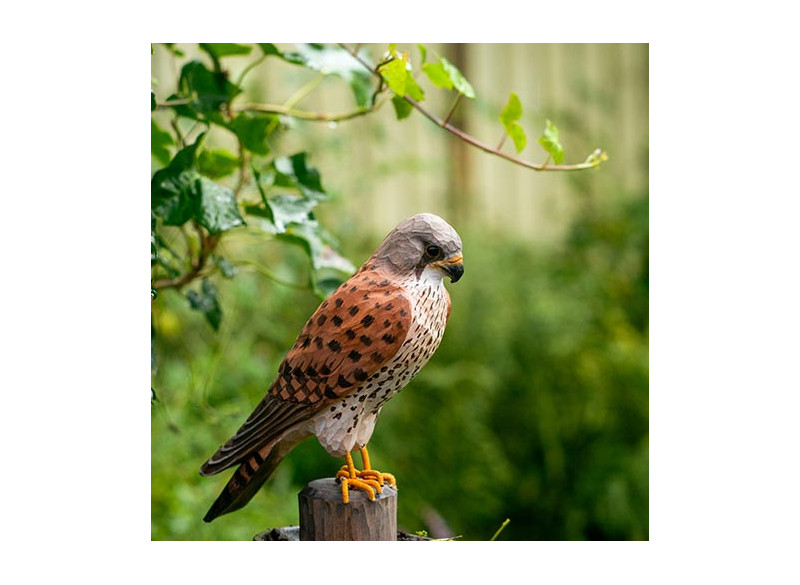Decofugle Tornfalk er håndskåret i træ og penselmalet. Fuglen er placeret på toppen af en stang, endda i træ, hvorfra den spejder med sine skarpe øjne. Denne naturlige fugl i træ bliver et unikt og smukt ornament for enhver, der elsker falke. En fremragende gave til alle, der har det hele!
