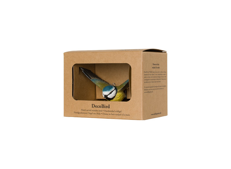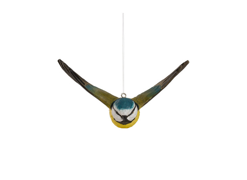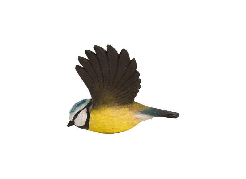 Udskåret i lindetræ og malet i hånden er denne flyvende blåmejse. Den bliver det en livlig detalje, der hænger i et vindue eller på nogle kviste i et rum. Et smukt og charmerende element i alt interiør. Fuglen er pakket i en udstillingsboks med vinduer, hvor du kan se blåmejsen kigge ud. Læs mer om Blåmejsen i den medfølgende mini-brochure.