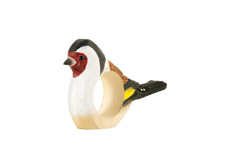 For et stænk af farve på bordet med en naturlig følelse, kan du nu dække bordet med vores håndskårne og penselmalede servietringe. Denne sjove servietring er inspireret af vores DecoBird-sortiment og lærer både dig og familien at genkende denne farverige fugl. Steglitsen har en broget fjerdragt og et knivskarpt næb til at hakke i frø.Modtager :