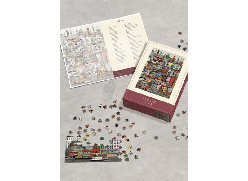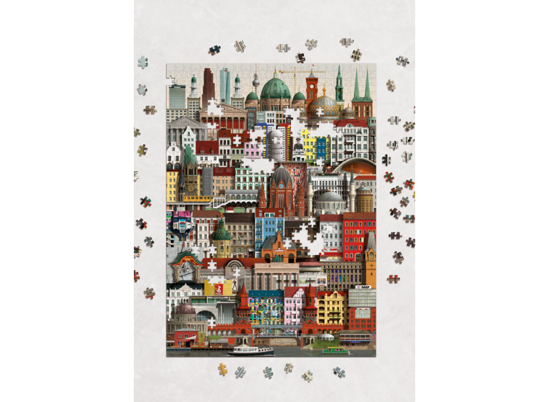 Jigsaw puzzle with 1000 pieces. While collecting this puzzle you will get to know the buildings much better, as your focus on details is the key word to bring the city back together. Hours of fun are awaiting you, and along the way you will most likely discover new buildings that might never have caught your attention. Along with the puzzle you will find a complete list of the buildings as well as a guiding poster that shows the motif.