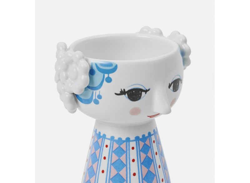 Bjørn Wiinblad's Eva candlesticks are a tribute to colors and imagination. With a unique, hand-drawn expression and vibrant color schemes, they add a touch of whimsy anywhere. The beautiful shade of blue in this 9.5 cm high candlestick accentuates its artistic charm. Perfect for tealights or candles, it creates joy and a colorful atmosphere, just like Wiinblad's own art. Measuring 8cm in diameter and 7.5cm in depth and crafted with a love of opulence, Eva is a timeless addition to any home that wants to exude personality.Recipient :