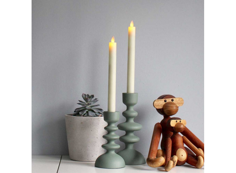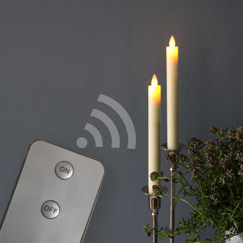Gift box with 2 LED light with realistic moving flame. With these light you get comfort and ambiance without particle contamination and risk of fire hazards. The lights are available in cream-colored wax with a remote control and 6 hour timer. The lights are 23.5 cm high.