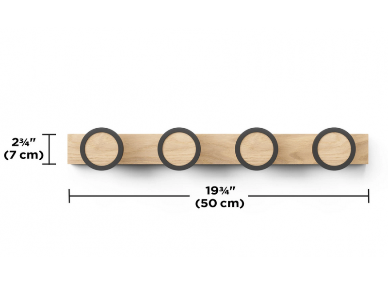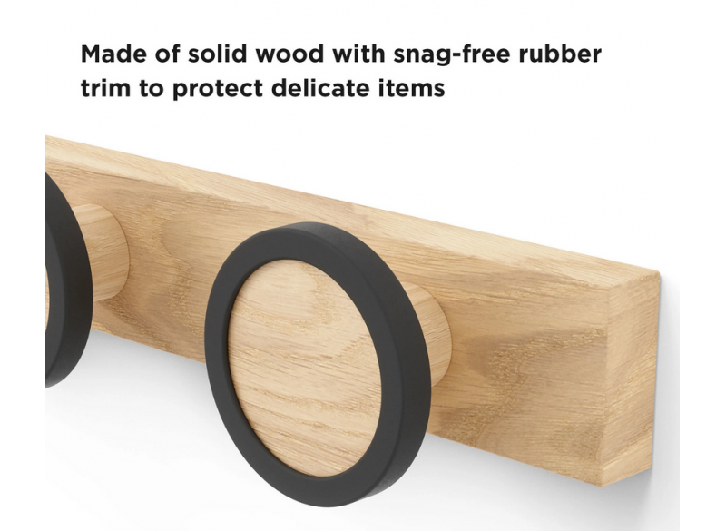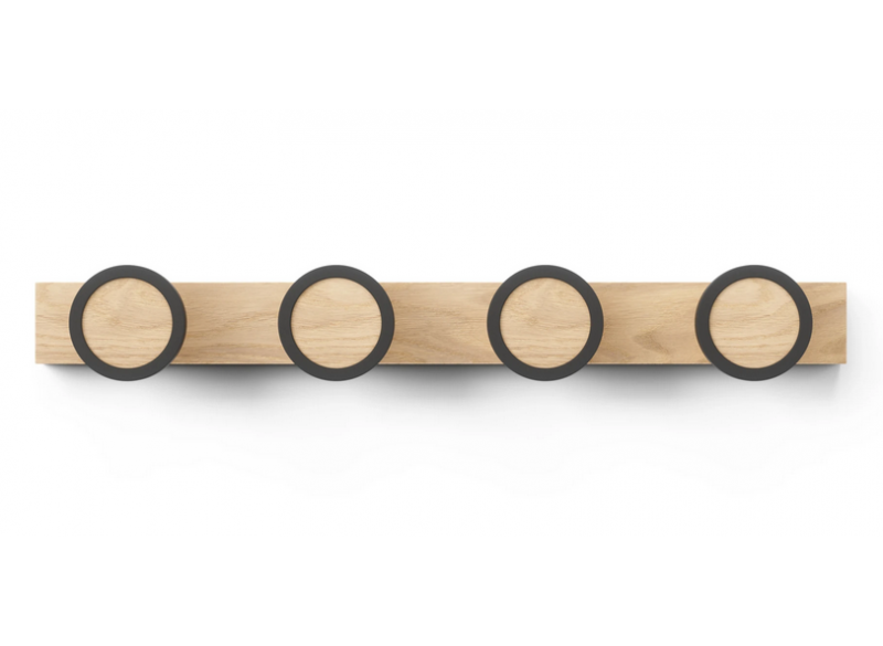 Hub Rail Hooks have 4 rounded hooks that add a modern touch to your walls. With a black rubber edge that prevents slipping. Made from solid wood, the Hub Rail 4 Hook is perfect for hanging your jackets and scarves while keeping your space tidy. This user-friendly coat rack is easy to install and can be used in different rooms in your home. Holds 2.2 kg per Hook Measures 51 x 6 x 7.5 cm Available in Nature or Walnut (Dark stained wood)Recipient :
