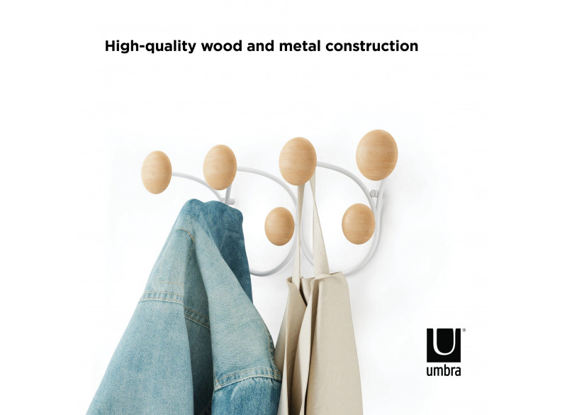 Dotsy mixes wood and metal in a sophisticated and playful way thanks to its circular hooksRecipient :