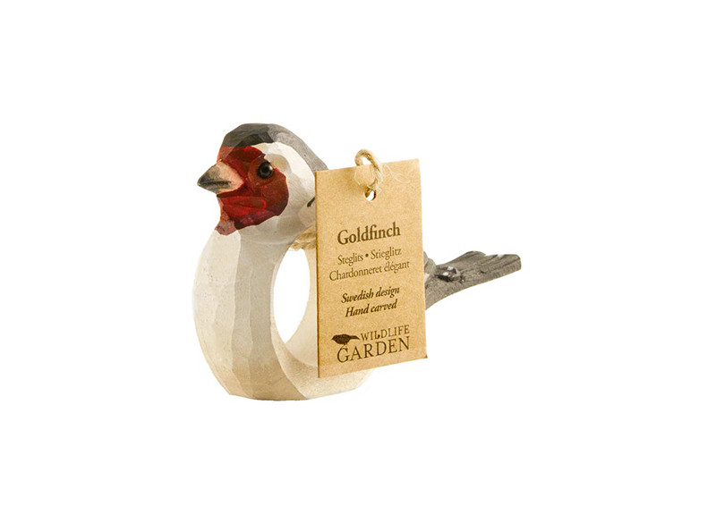 For a splash of color on the table with a natural feel, you can now set the table with our hand cut and brush painted napkin rings. This fun napkin ring is inspired by our DecoBird range and teaches both you and the family to recognize this colorful bird. The goldfinch has a variegated plumage and a razor-sharp beak for pecking at seeds.Recipient :